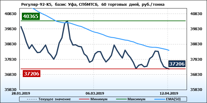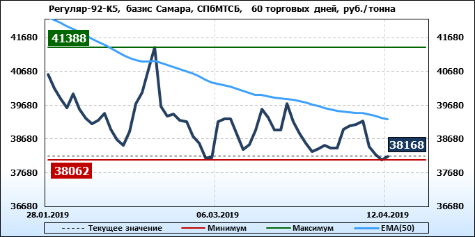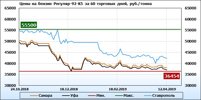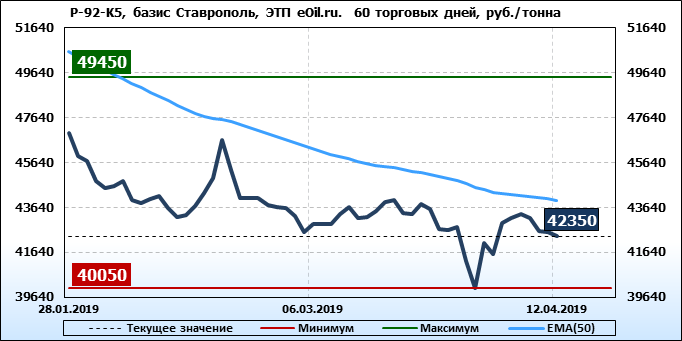 Цены на бензин. Р-92-К5, базис Ставрополь, ЭТП eOil.ru. Данные на 12.04.19