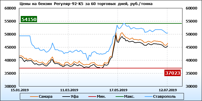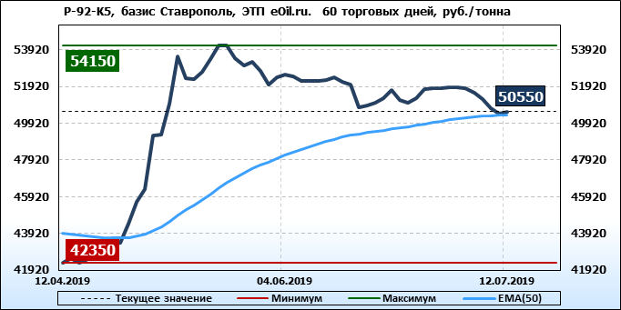 Цены на бензин. Р-92-К5, базис Ставрополь, ЭТП eOil.ru. Данные на 12.07.19