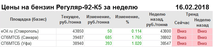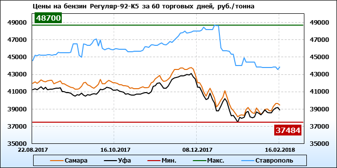 Цены на бензин. Р-92-К5, базис Ставрополь, ЭТП eOil.ru. Данные на 16.02.2018