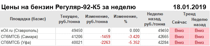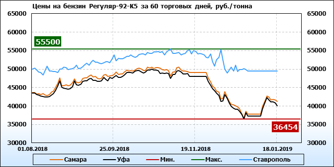 Цены на бензин. Р-92-К5, базис Ставрополь, ЭТП eOil.ru. Данные на 18.01.19