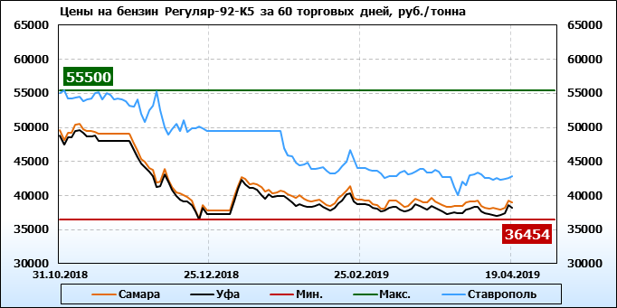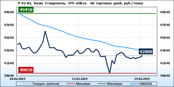 Цены на бензин. Р-92-К5, базис Ставрополь, ЭТП eOil.ru. Данные на 19.04.19