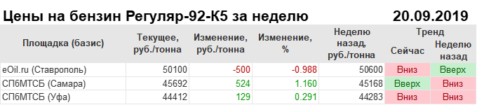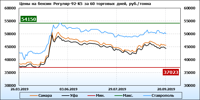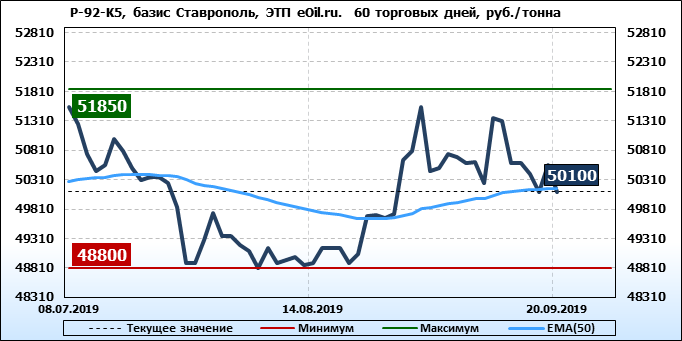 Цены на бензин. Р-92-К5, базис Ставрополь, ЭТП eOil.ru. Данные на 20.09.19