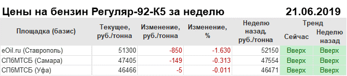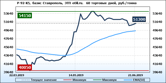 Цены на бензин. Р-92-К5, базис Ставрополь, ЭТП eOil.ru. Данные на 21.06.19
