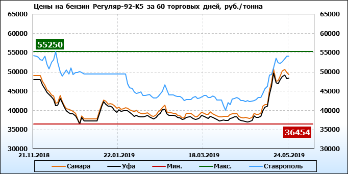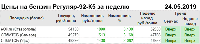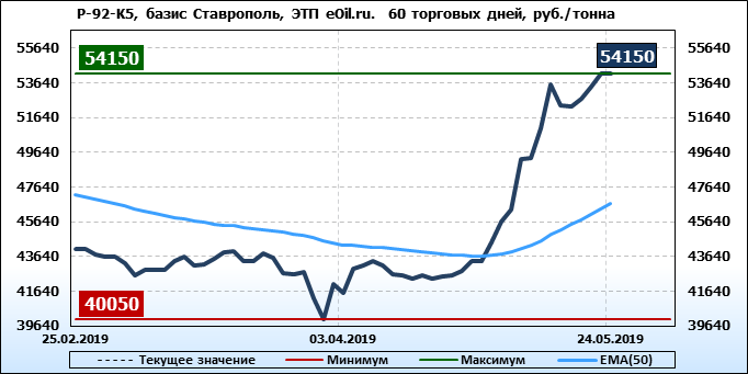 Цены на бензин. Р-92-К5, базис Ставрополь, ЭТП eOil.ru. Данные на 24.05.19