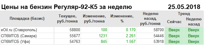 Цены на бензин. Р-92-К5, базис Ставрополь, ЭТП eOil.ru. Данные на 25.05.2018