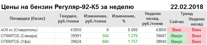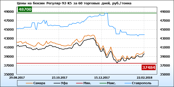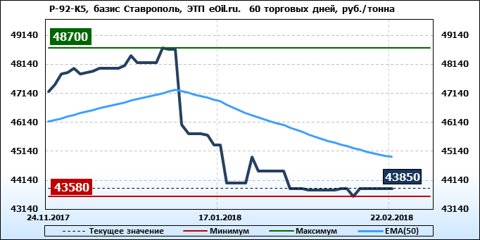 Цены на бензин. Р-92-К5, базис Ставрополь, ЭТП eOil.ru. Данные на 26.02.2018