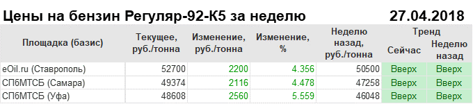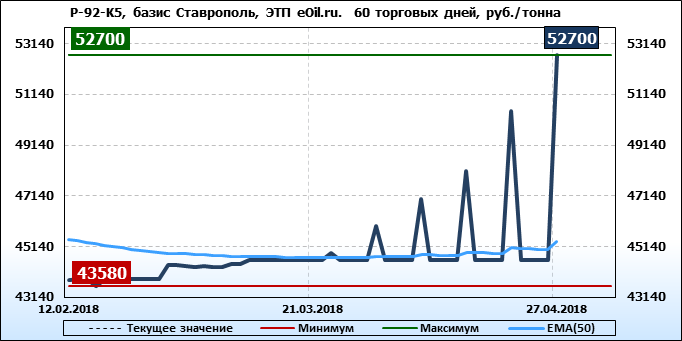 Цены на бензин. Р-92-К5, базис Ставрополь, ЭТП eOil.ru. Данные на 27.04.2018