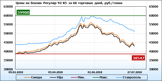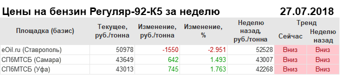 Цены на бензин. Р-92-К5, базис Ставрополь, ЭТП eOil.ru. Данные на 27.07.2018
