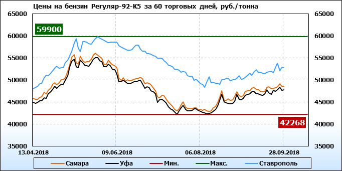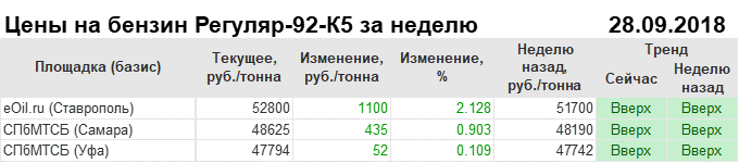 Цены на бензин. Р-92-К5, базис Ставрополь, ЭТП eOil.ru. Данные на 28.09.18