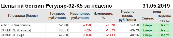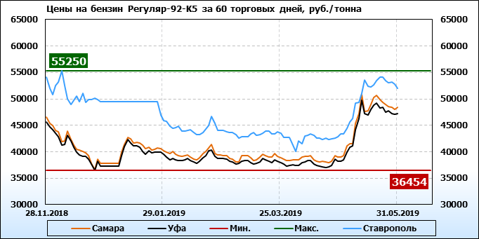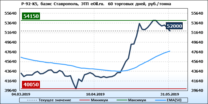 Цены на бензин. Р-92-К5, базис Ставрополь, ЭТП eOil.ru. Данные на 31.05.19