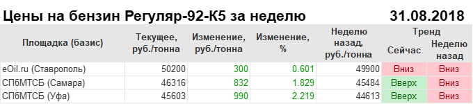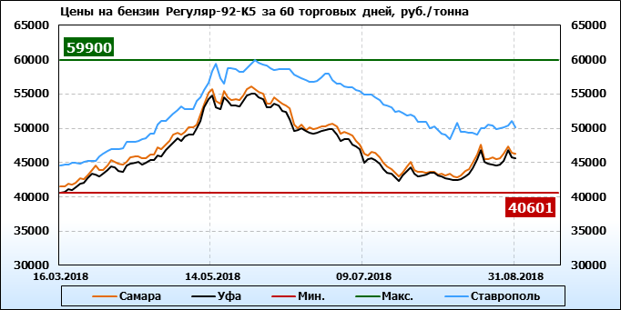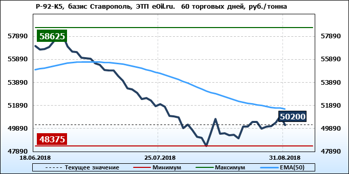 Цены на бензин. Р-92-К5, базис Ставрополь, ЭТП eOil.ru. Данные на 31.08.2018