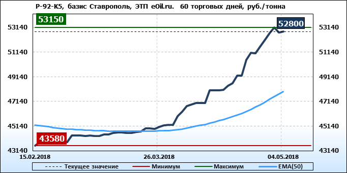 Цены на бензин. Р-92-К5, базис Ставрополь, ЭТП eOil.ru. Данные на 4.05.2018