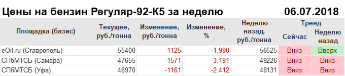 Цены на бензин. Р-92-К5, базис Ставрополь, ЭТП eOil.ru. Данные на 06.07.2018