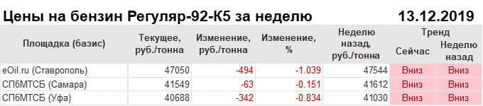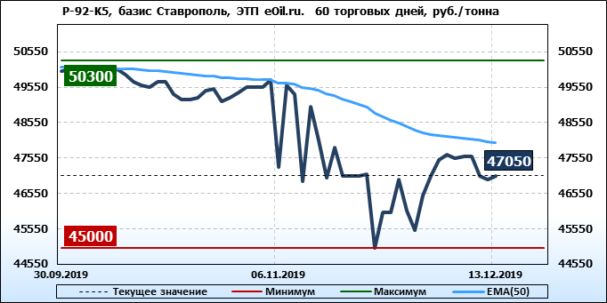 Цены на бензин. Р-92-К5, базис Ставрополь, ЭТП eOil.ru. на 13.12.2019