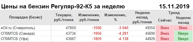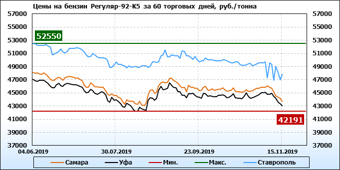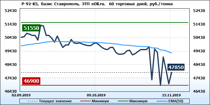Цены на бензин. Р-92-К5, базис Ставрополь, ЭТП eOil.ru. на 15.11.2019