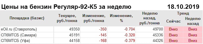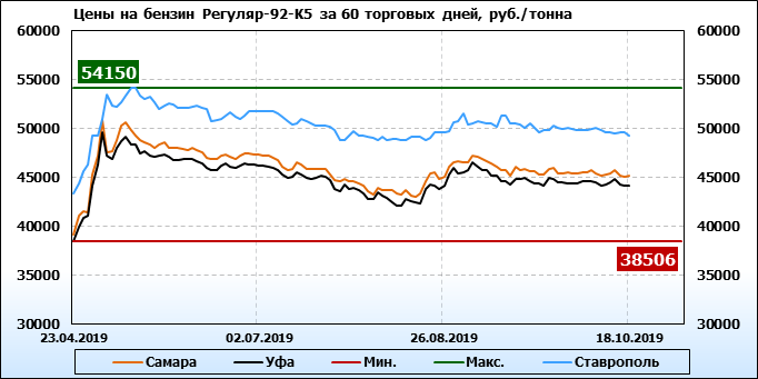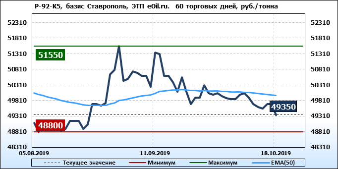 Цены на бензин. Р-92-К5, базис Ставрополь, ЭТП eOil.ru. на 18.10.2019