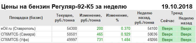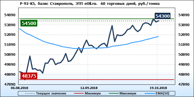 Цены на бензин. Р-92-К5, базис Ставрополь, ЭТП eOil.ru. на 19.10.2018