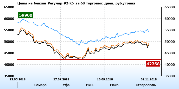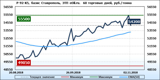 Цены на бензин. Р-92-К5, базис Ставрополь, ЭТП eOil.ru на 2.11.2018
