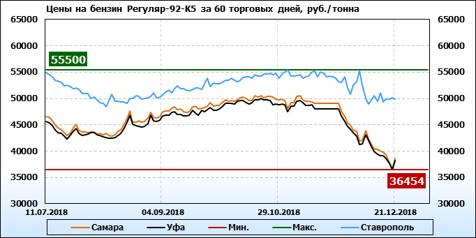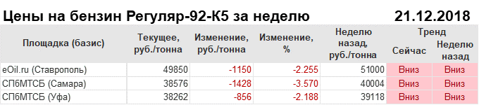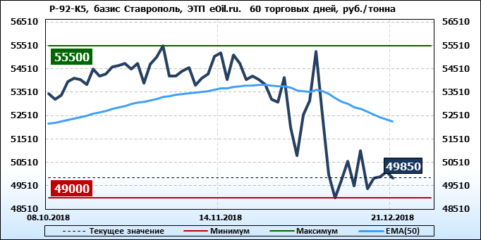 Цены на бензин. Р-92-К5, базис Ставрополь, ЭТП eOil.ru на 21.12.2018