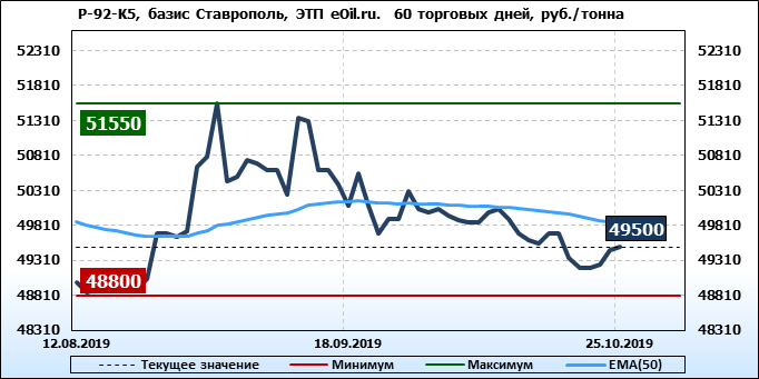 Цены на бензин. Р-92-К5, базис Ставрополь, ЭТП eOil.ru. на 25.10.2019