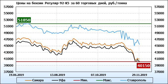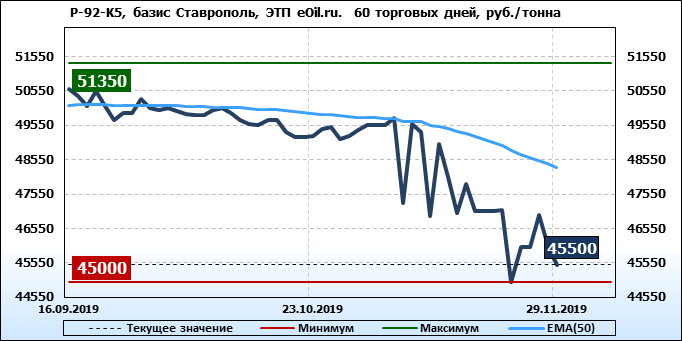 Цены на бензин. Р-92-К5, базис Ставрополь, ЭТП eOil.ru. на 29.11.2019