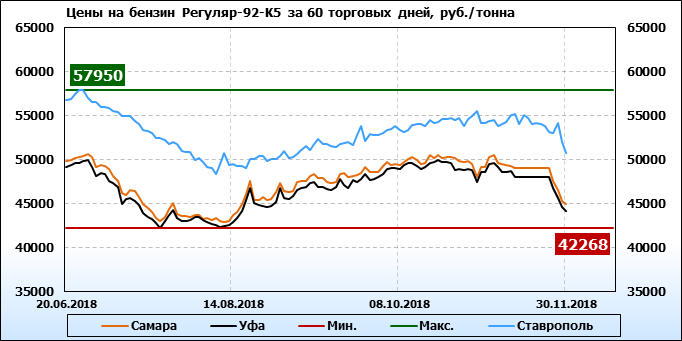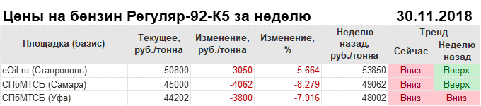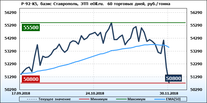 Цены на бензин. Р-92-К5, базис Ставрополь, ЭТП eOil.ru на 30.11.2018
