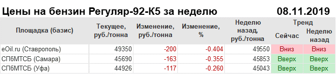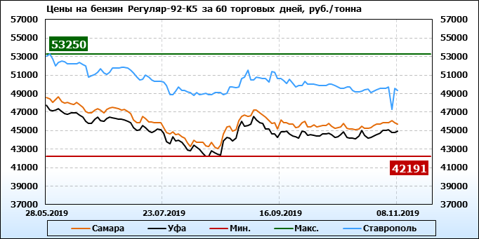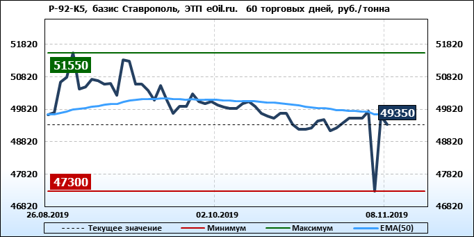 Цены на бензин. Р-92-К5, базис Ставрополь, ЭТП eOil.ru. на 8.11.2019