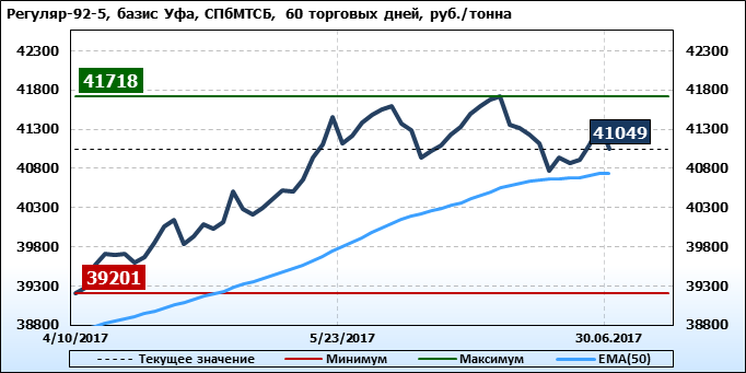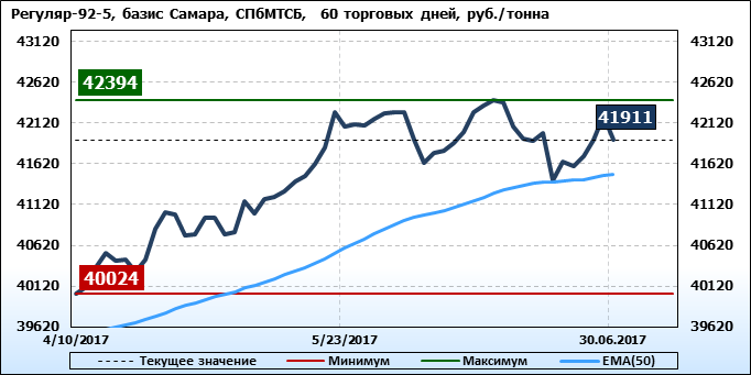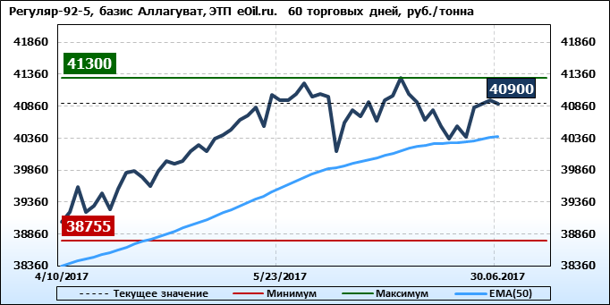 Цены на бензин. Регуляр-92-5, базис Аллагуват, ЭТП eOil.ru. Данные на 30.06.2017
