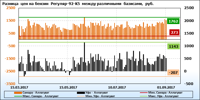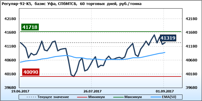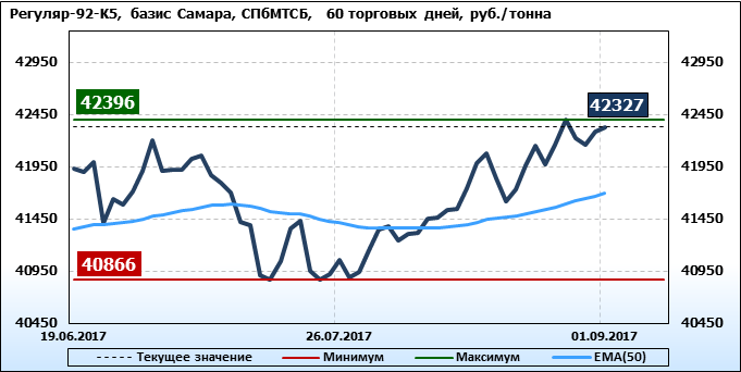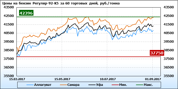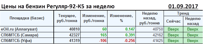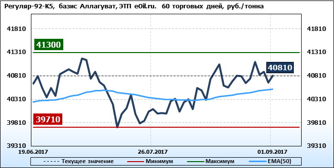 Цены на бензин. Регуляр-92-К5, базис Аллагуват, ЭТП eOil.ru. Данные на 01.09.2017