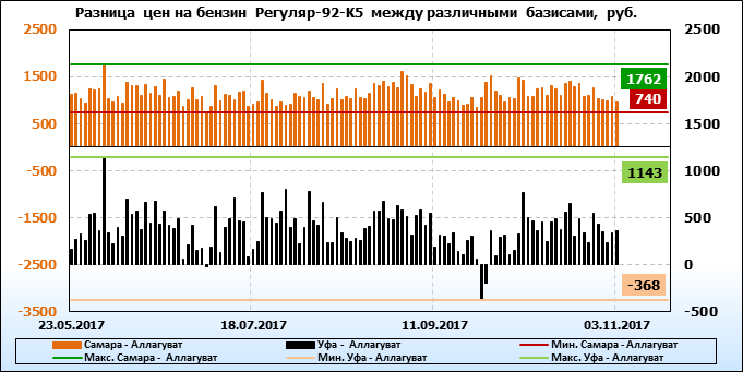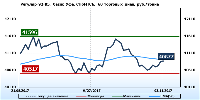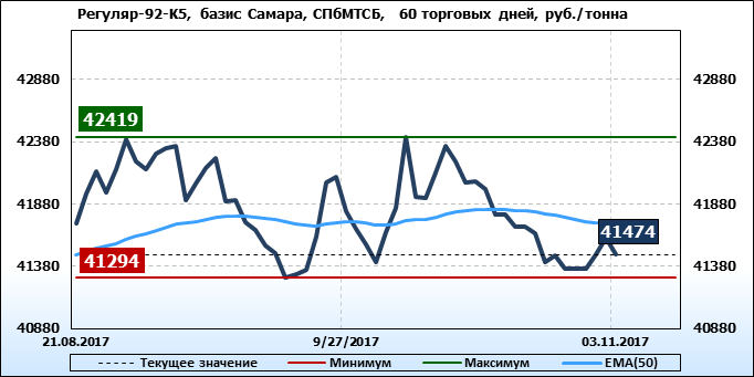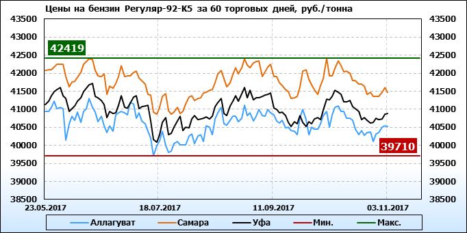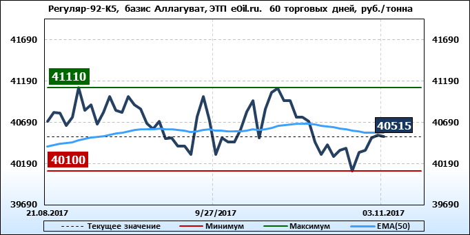 Цены на бензин. Регуляр-92-К5, базис Аллагуват, ЭТП eOil.ru. Данные на 03.11.2017
