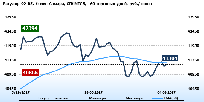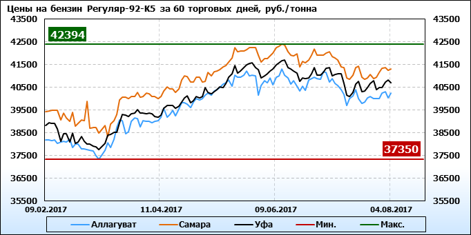 Цены на бензин. Регуляр-92-К5, базис Аллагуват, ЭТП eOil.ru. Данные на 04.08.2017