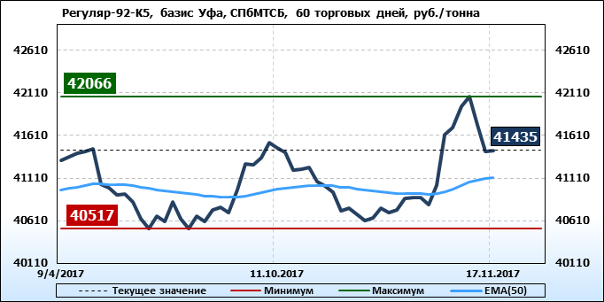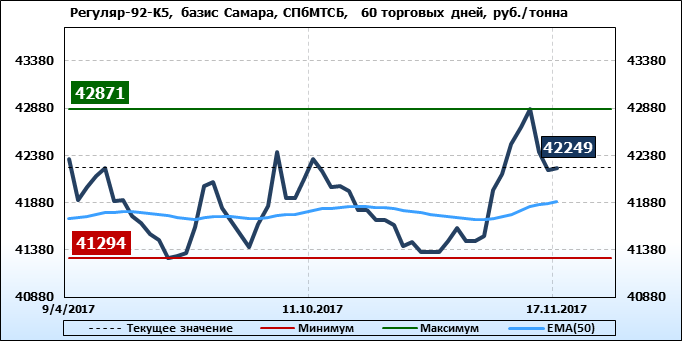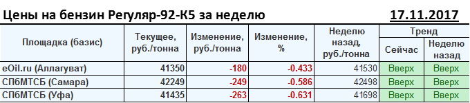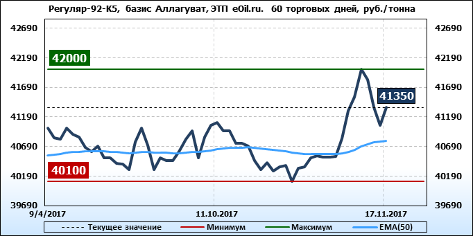 Цены на бензин. Регуляр-92-К5, базис Аллагуват, ЭТП eOil.ru. Данные на 17.11.2017