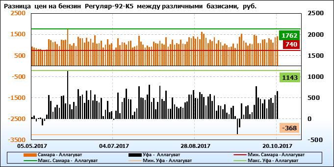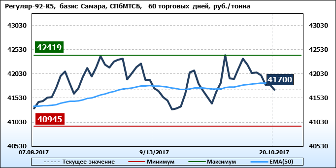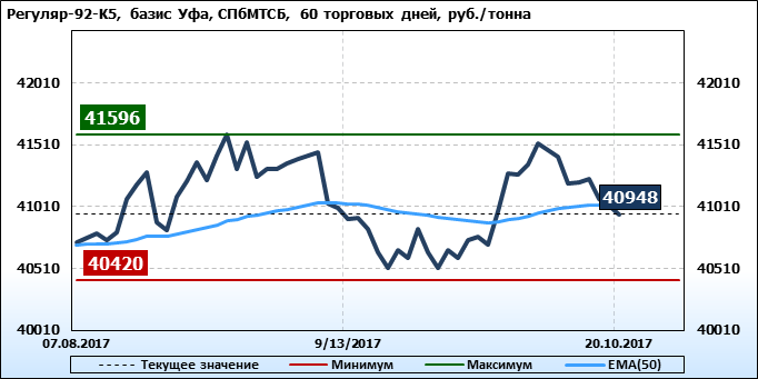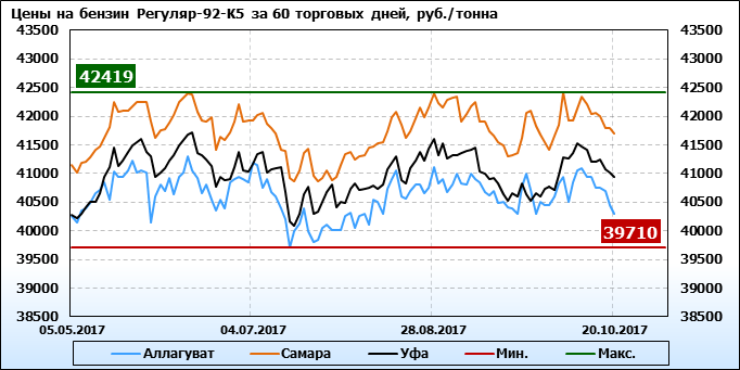 Цены на бензин. Регуляр-92-К5, базис Аллагуват, ЭТП eOil.ru. Данные на 20.10.2017