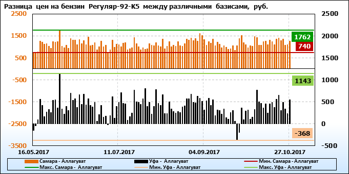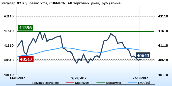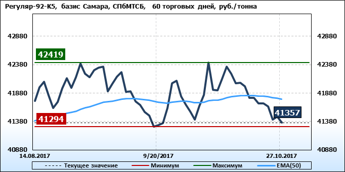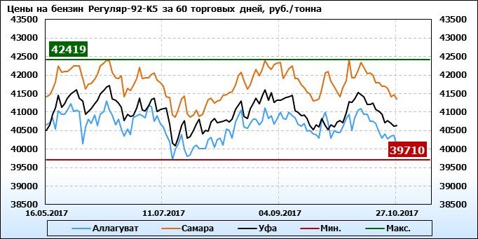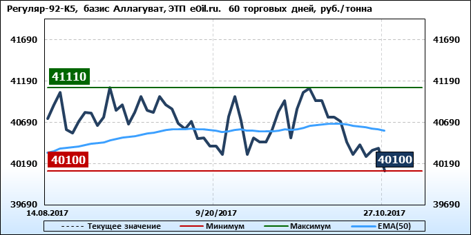 Цены на бензин. Регуляр-92-К5, базис Аллагуват, ЭТП eOil.ru. Данные на 27.10.2017