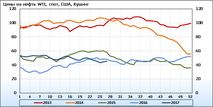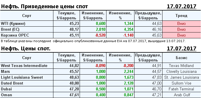 Цена на сорт MARS выросла на 1 до 45,57 долларов за баррель. Цены на нефть сорта Brent с поставкой из портов ЕС выросли на 2,01 до 48,17 долларов за баррель.