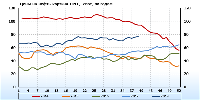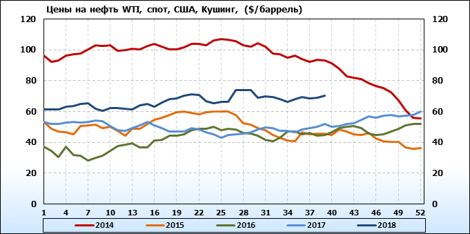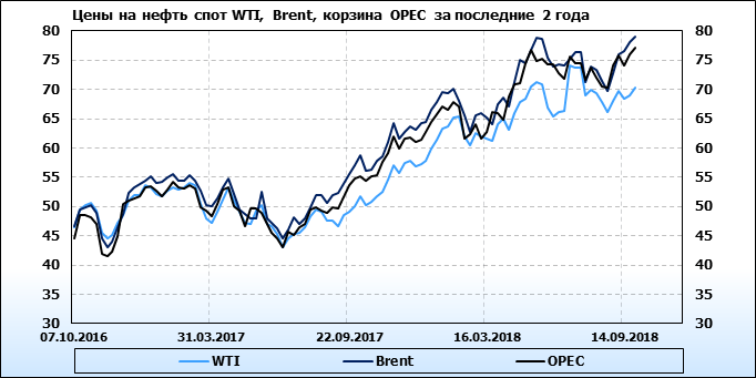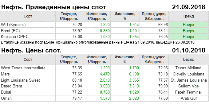 Цены спот на нефть по сортам и базисам. Данные на 01.10.2018