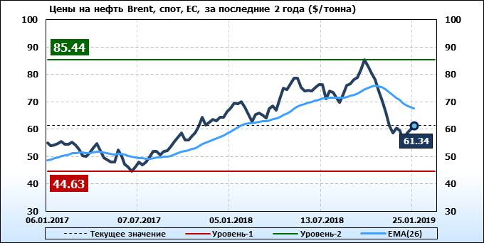 Цены на нефть в понедельник 4 февраля выросли до максимума с начала 2019 г. после публикации данных Baker Hughes. Цена контракта на нефть европейского эталона Brent на бирже ICE в Лондоне превысила $63 за баррель, согласно данным торгов.