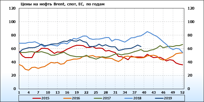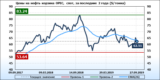 Фьючерсы на нефть выросли на торгах в Азии в пятницу, 4 октября. Однако по итогам недели черное золото подешевело, на фоне опасений в отношении глобального роста и заявления Саудовской Аравии о полном восстановлении объемов добычи. С начала недели Brent подешевел на 6.7%, что является самым существенным недельным падением с декабря. Американский бенчмарк WTI упал на 6%. Это самое значительное недельное падение с июля текущего года. Опубликованная в четверг американская статистика усилила опасения инвесторов в отношении будущего спроса на нефть из-за возросших беспокойств в отношении того, что затянувшийся между США и Китаем торговый спор подталкивает мировую экономику к рецессии.