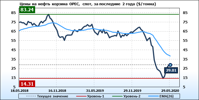 Цены на нефть сорта WTI с базиса поставки Кушинг выросли на 1.09 до 34.19 долларов за баррель. Тренд на рынке WTI медвежий. Цены на нефть сорта Brent с поставкой из портов ЕС упали на -0.24 до 33.7 долларов за баррель. Тренд на рынке Brent падающий. Цены на корзину сортов нефти стран членов ОПЕК выросли на 0.95 до 29.01 долларов за баррель. Ценовая тенденция по корзине ОПЕК направлена вниз. Цена на сорт MARS выросла на 3.3 до 38.36 долларов за баррель. Цена на сорт Oman выросла на 4.09 до 40.59 долларов за баррель. Сорт марки Dubai подорожал на 8.83 до 39.26 долларов за баррель.