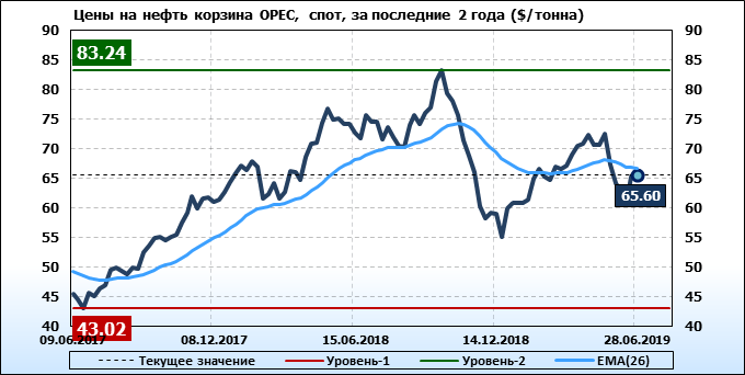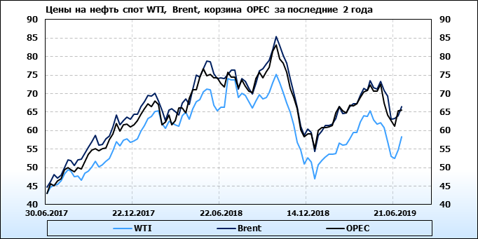 Цены спот на нефть по сортам и базисам. Данные на 05.07.2019