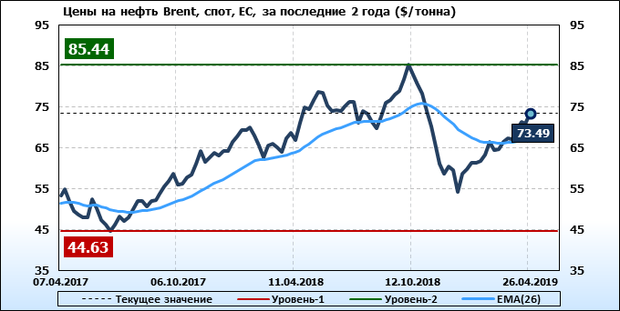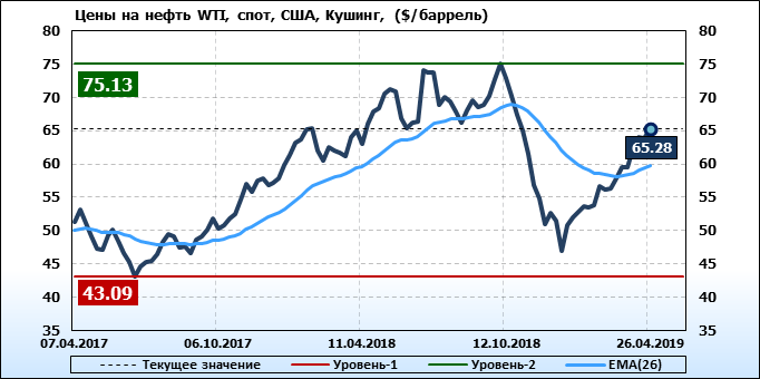 Цены на нефть сорта WTI с базиса поставки Кушинг выросли на 1.48 до 65.28 долларов за баррель. Тренд на рынке WTI бычий. Цены на нефть сорта Brent с поставкой из портов ЕС выросли на 2.62 до 73.49 долларов за баррель. Тренд на рынке Brent растущий. Цены на корзину сортов нефти стран членов ОПЕК выросли на 1.55 до 72.38 долларов за баррель. Ценовая тенденция по корзине ОПЕК направлена вверх. Цена на сорт MARS упала на 0.96 до 68.14 долларов за баррель. Цена на сорт Oman упала на 3.32 до 68.43 долларов за баррель. Сорт марки Dubai подешевел на 0.18 до 70.95 долларов за баррель.