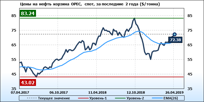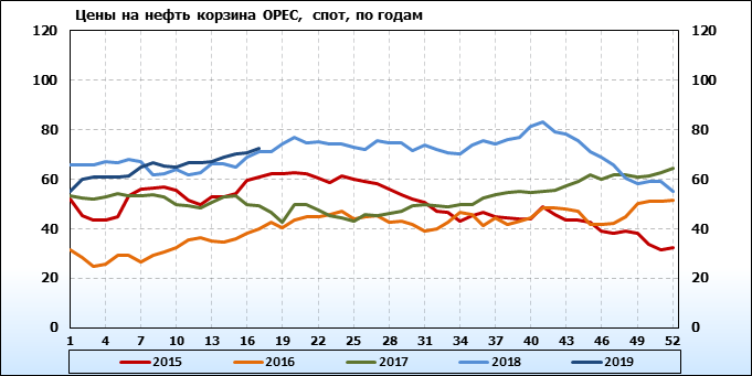 Цены спот на нефть по сортам и базисам. Данные на 06.05.2019