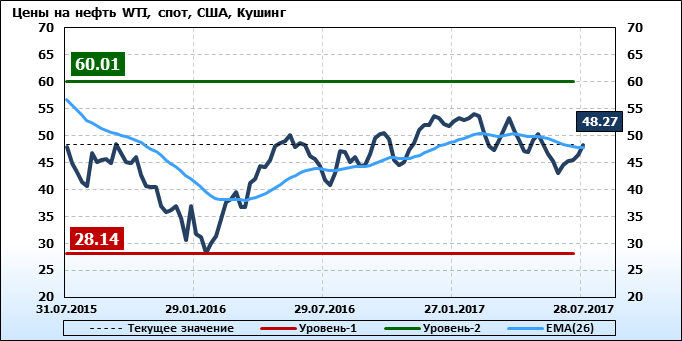 Цены на нефть сорта WTI с базиса поставки Кушинг выросли на 1.86 до 48.27 долларов за баррель. Тренд на рынке WTI бычий. Цена на сорт MARS выросла на 0.26 до 48.55 долларов за баррель.