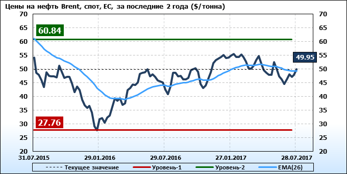 Цены на нефть сорта Brent с поставкой из портов ЕС выросли на 1.96 до 49.95 долларов за баррель. Тренд на рынке Brent растущий.