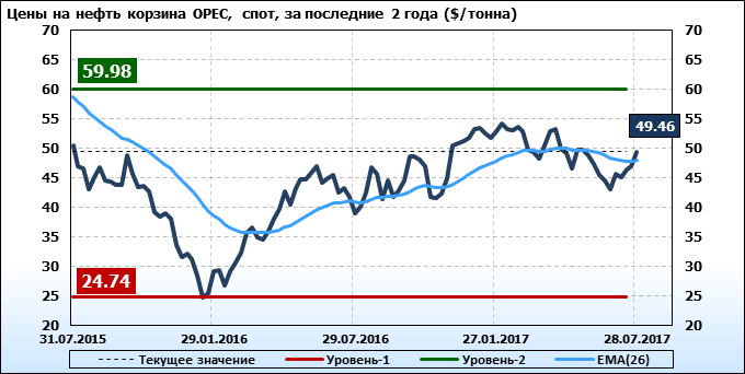 Цены на корзину сортов нефти стран членов ОПЕК выросли на 2.47 до 49.46 долларов за баррель. Ценовая тенденция по корзине ОПЕК направлена вверх. Цена на сорт Oman выросла на 3.41 до 51.42 долларов/баррель.