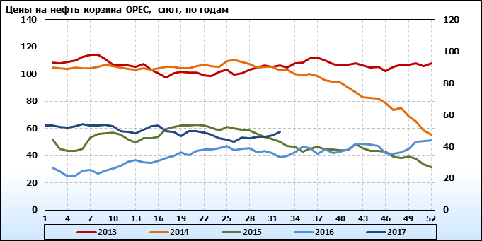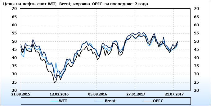 Цены спот на нефть по сортам и базисам. Данные на 07.08.2017