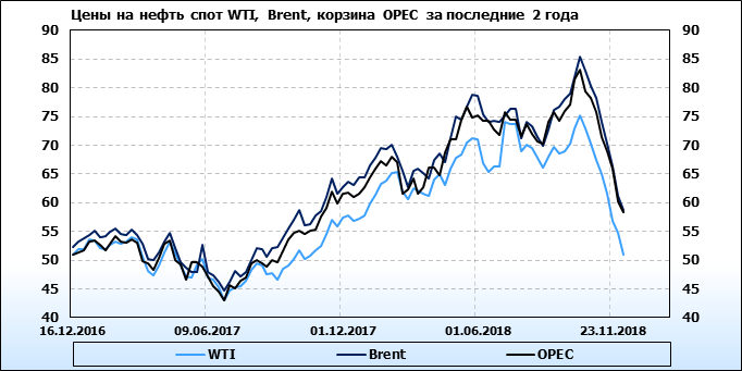 Цены спот на нефть по сортам и базисам. Данные на 10.12.2018
