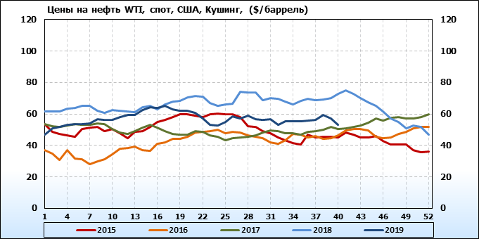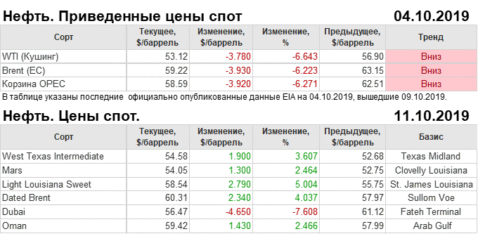 Цены спот на нефть по сортам и базисам. Данные на 11.10.2019