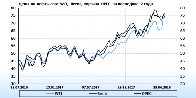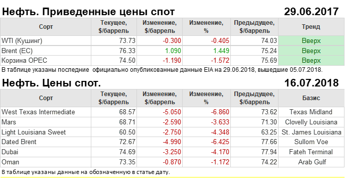 Цены спот на нефть по сортам и базисам. Данные на 16.07.2018
