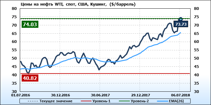 Цены на нефть сорта WTI с базиса поставки Кушинг упали на -0.3 до 73.73 долларов за баррель. Тренд на рынке WTI бычий.